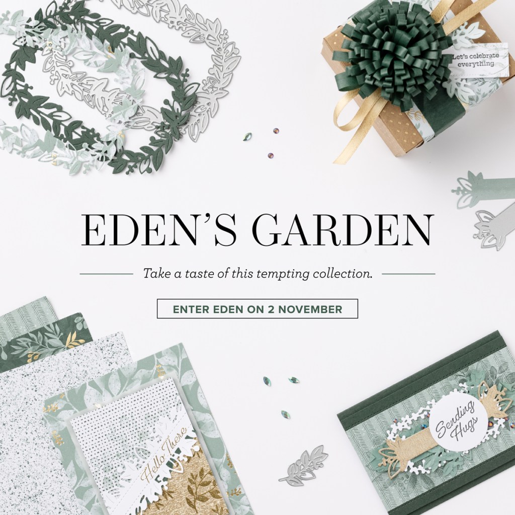 If you haven’t checked out the Eden’s Garden bundle (includes the stamp set and dies, Item No. 157382) I highly recommend that you do. This bundle will help you create beautiful, elegant, all-occasion cards. The Eden’s Garden stamps and dies will still be available in the upcoming January-June 2022 Mini Catalog, so you have plenty of time to order.