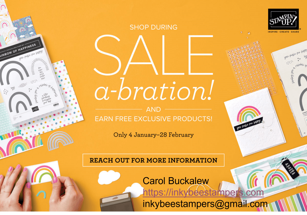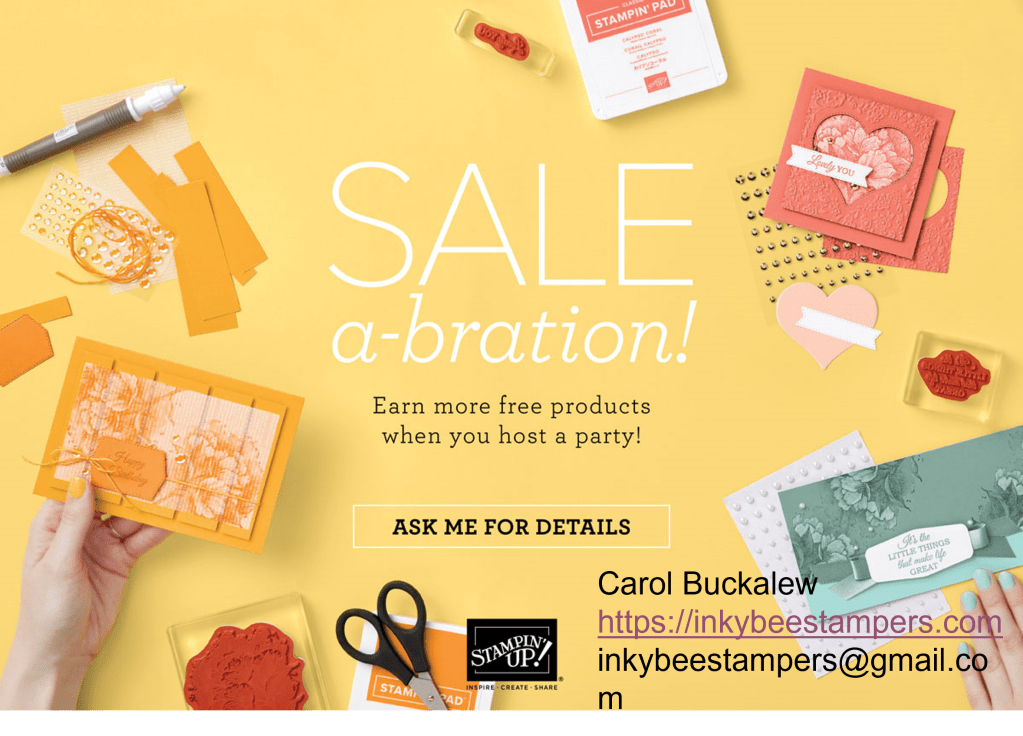 Hosting is even more rewarding during Sale-A-Bration season. When you host a party and your party reaches a certain amount in sales you can earn a stamp set for free! I’m happy to provide more details if you’re interested in hosting a party during Sale-A-Bration…just ask!