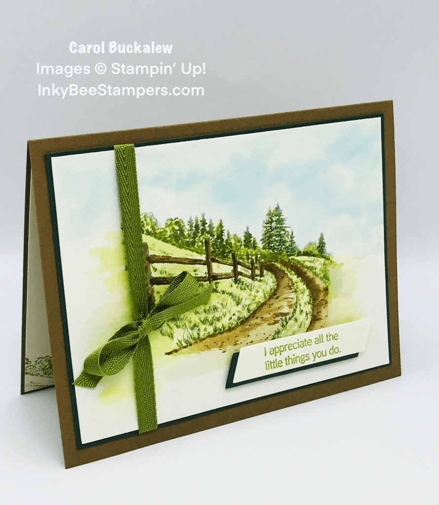 Because I love to watercolor, I couldn’t help but create another card using the In The Country Stamp Set…this time I water colored this country scene using ink! You can earn the In The Country Stamp Set for free during Sale-A-Bration with a qualifying order!