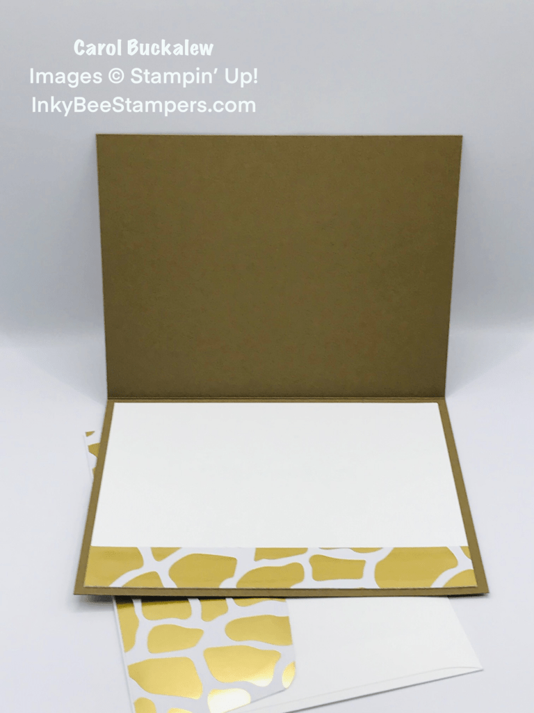 The inside panel was decorated with a coordinating strip of the Like An Animal paper in gold and the panel was adhered to the inside of the card.