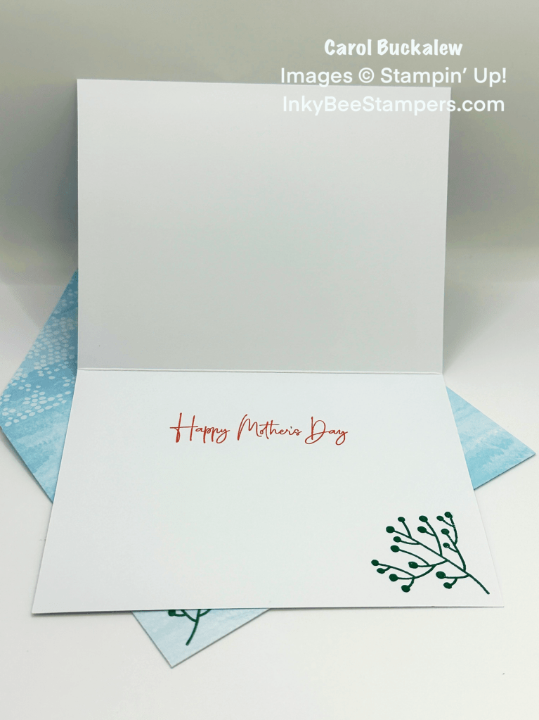 The content in this blog is the sole responsibility of Carol Buckalew as an Independent Stampin’ Up! demonstrator and the use of and content of classes, services or products offered is not endorsed by Stampin’ Up!  All Stampin’ Up! images are ©Stampin’ Up! 2023-2024.