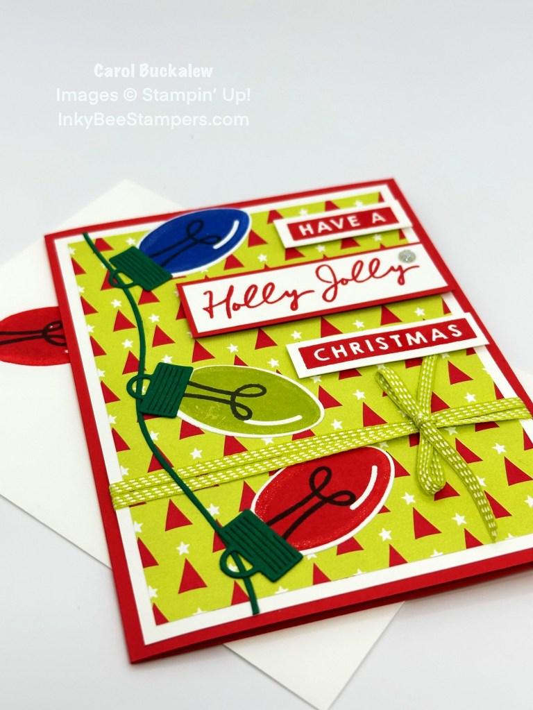 Today’s card was created with the cheerful Merry & Bright Bundle and Merry Bold & Bright 12″ x 12″ Designer Series Paper! Who remembers the old-fashioned large Christmas lights? I do!