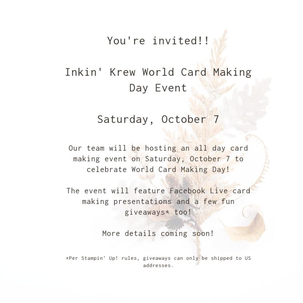 Be sure to save the date! Stampin’ Up! will once again be hosting a virtual World Cardmaking Day event!