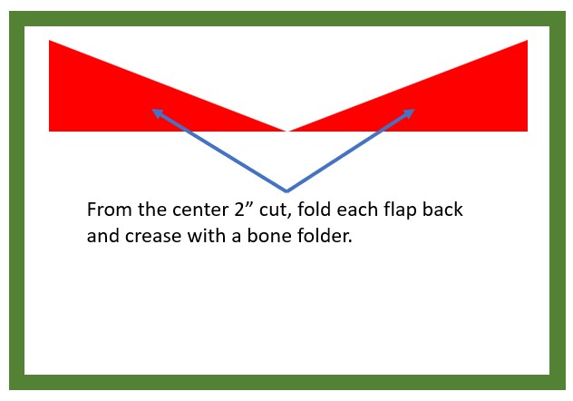 The Collar Fun Fold is easy to create. I started with a 5” x 3-3/4” piece of the Shining Christmas Specialty Designer Series Paper in a holly and berry print. On the long edge of this panel, I located the center point, then made a vertical 2” cut. Each corner on the left and right of the cut line was folded back to create a shirt collar look…hence the fun fold name.