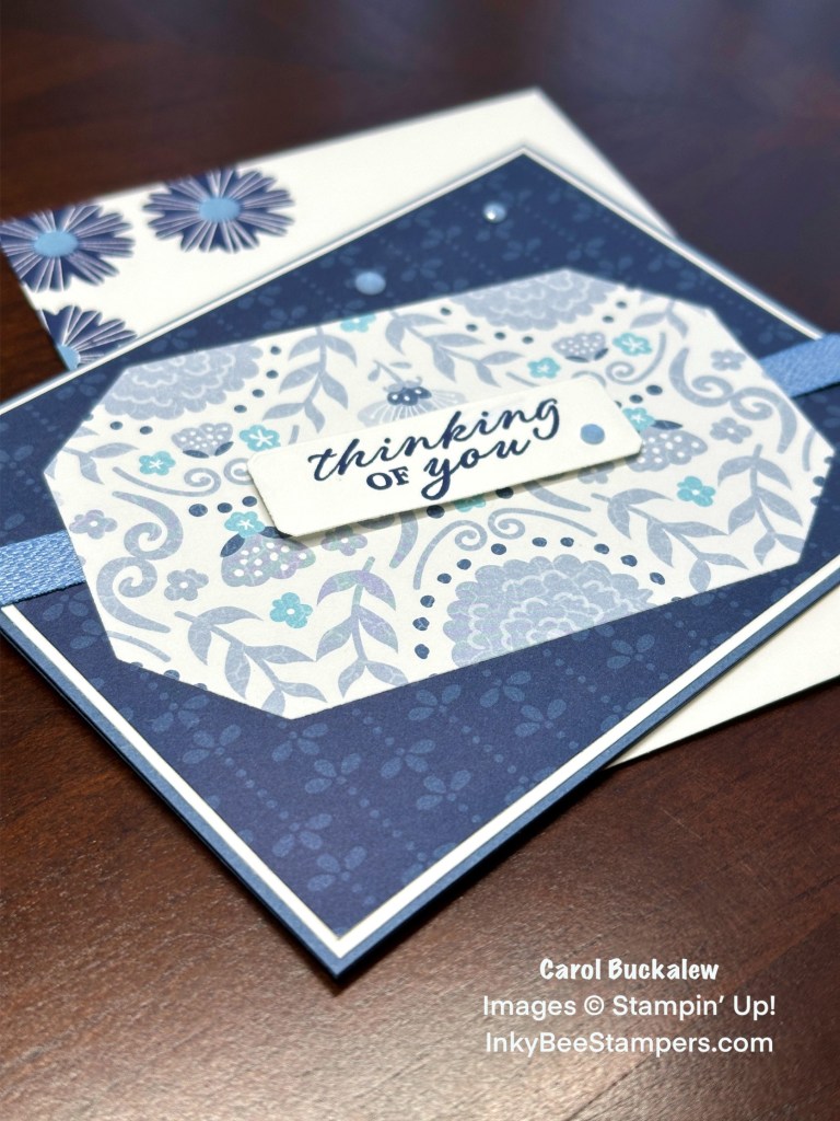 I hadn’t used the Countryside Corners Bundle or the Countryside Inn Designer Series Paper in quite a while and it was like seeing an old friend! The blues are just beautiful, and I just ordered another pack of this designer series paper. Both are on low inventory so if you’d like to add these items to your stash…order soon!