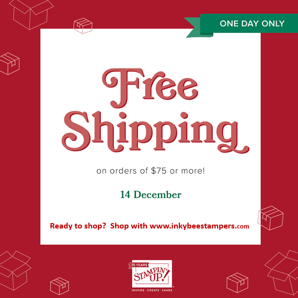 Get your shopping lists ready…and check them twice. Stampin’ Up! is offering free shipping on all qualifying orders (&75 or more) tomorrow, December 14, 2023 only! Thinking about stocking up on crafting essentials? Got the urge to splurge? Get all of the products you love while saving on shipping costs! This incredible deal only lasts for 24 hours, so don’t delay! Here are the details.