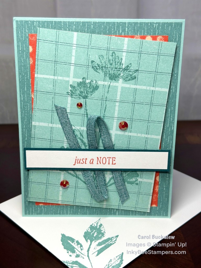 I created my card today using the lovely Inked & Tiled Stamp Set and Inked Botanicals 6″ x 6″ Designer Series Paper. I love the simple and beautiful images in this stamp set!
