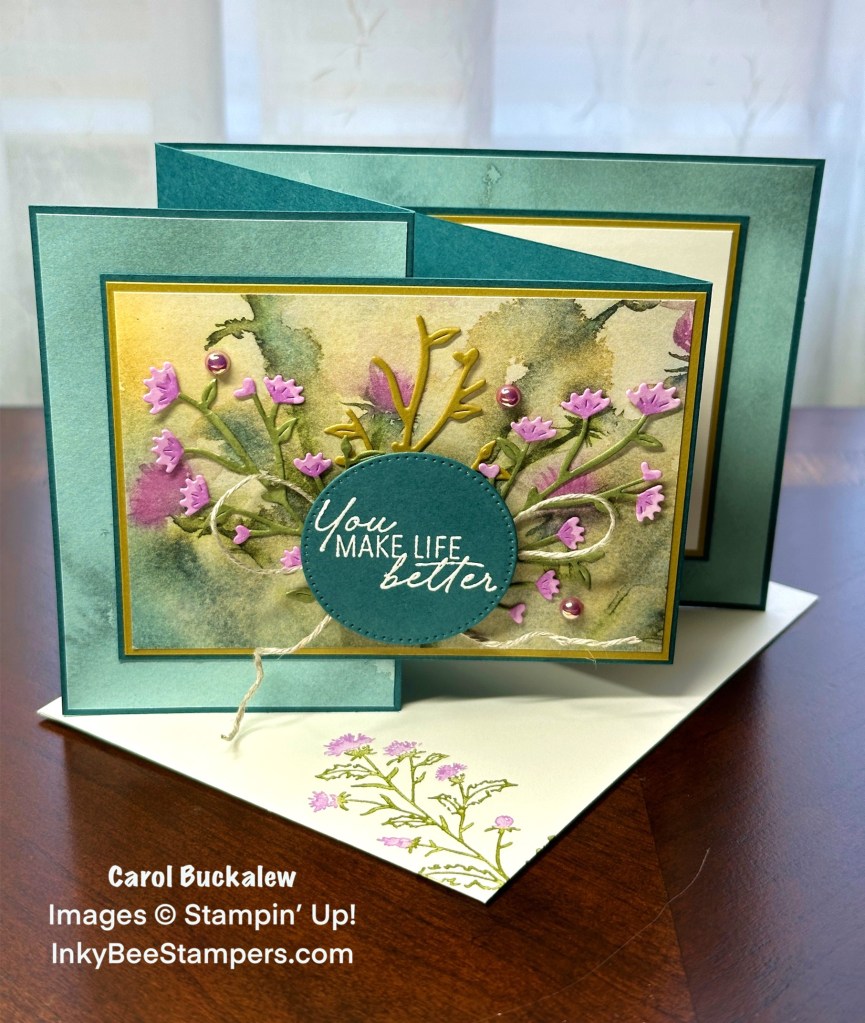 Here is another sneak peek of products that will be available on May 1 from the beautiful Thoughtful Journey Suite Collection! The Thoughtful Journey 6″ x 6″ Designer Series Paper is stunning and what better way to show it off than a Double Z Fold card!