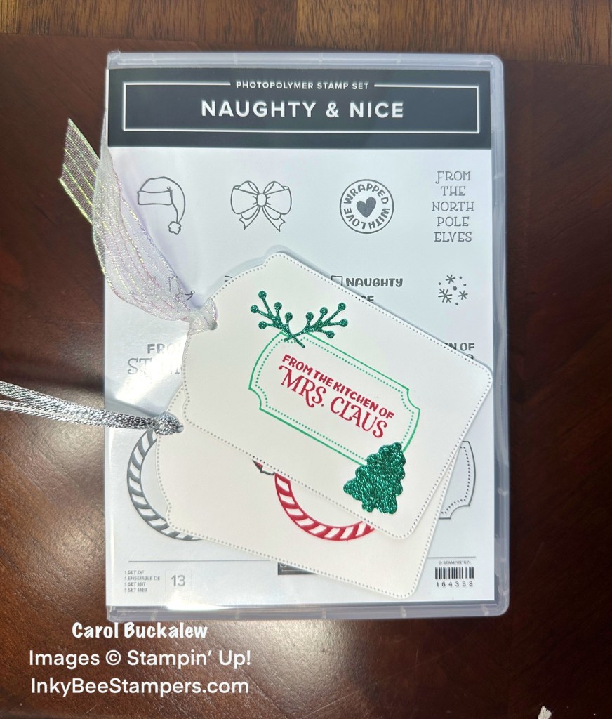 I have a quick and simple project for you today using the fun Naughty & Nice Stamp Set. The Naughty & Nice Stamp Set is perfect for creating tags for gifts and goodies! I love adding a personal gift tag to gifts!