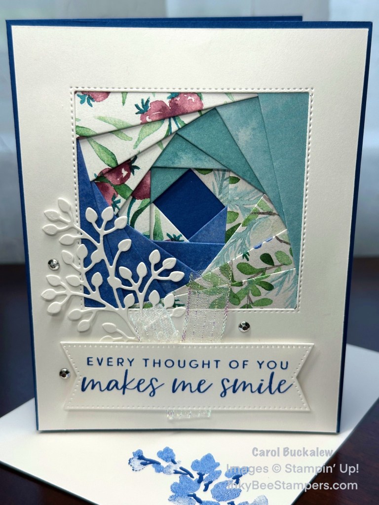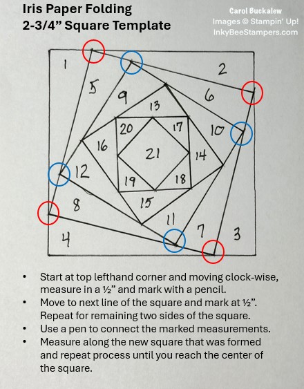 I was recently inspired by my team member, Joan, to create a card using the Iris Paper Folding technique. I have seen this technique before but had never tried it. Joan’s card was so beautiful that I had to give it a go. I watched a few tutorials on You Tube and I was off! Christine’s Crafts You Tube channel offers some easy-to-understand instructions in case you’d like to try this technique. You can find her video on creating a template by clicking here. For her instructions on how to complete a project, click here. I also provide instructions in my pdf tutorial linked below.