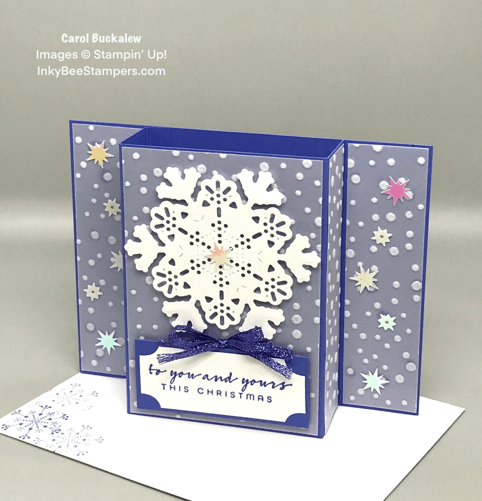 I created my card for today using the Christmas Lights Stamp Set, Twinkling Lights Dies and the Snowflake 12″ x 12″ Specialty Vellum. Sentiments came from the Brightest Glow Stamp Set.