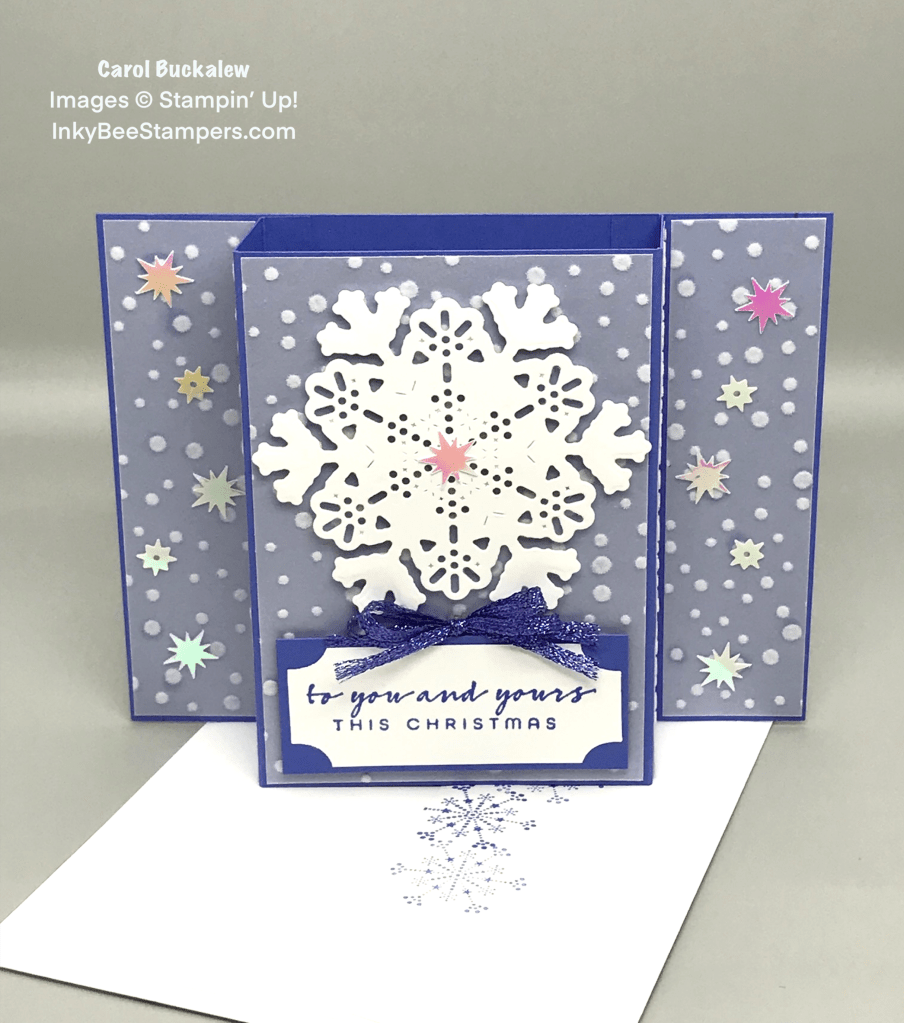 Hi Carol….this is a wonderful card!! I love the fun fold….the glitter of snow…..everything about it…….loved watching you create it ‘live’ too!!
